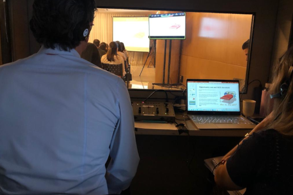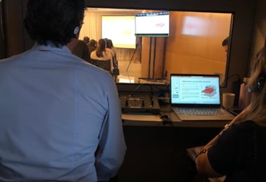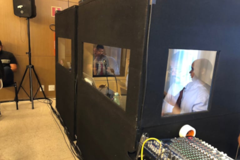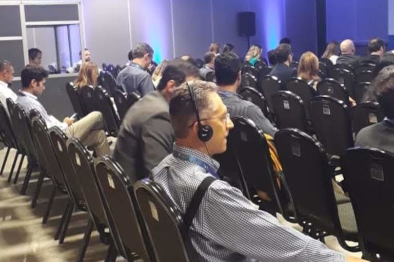 A palestra silenciosa utiliza receptores individuais com fones de ouvido, permitindo que cada participante escute a apresentação ou a interpretação em seu idioma sem interferência externa. A Truest Translations fornece todo o equipamento e suporte técnico para garantir uma experiência clara e profissional.